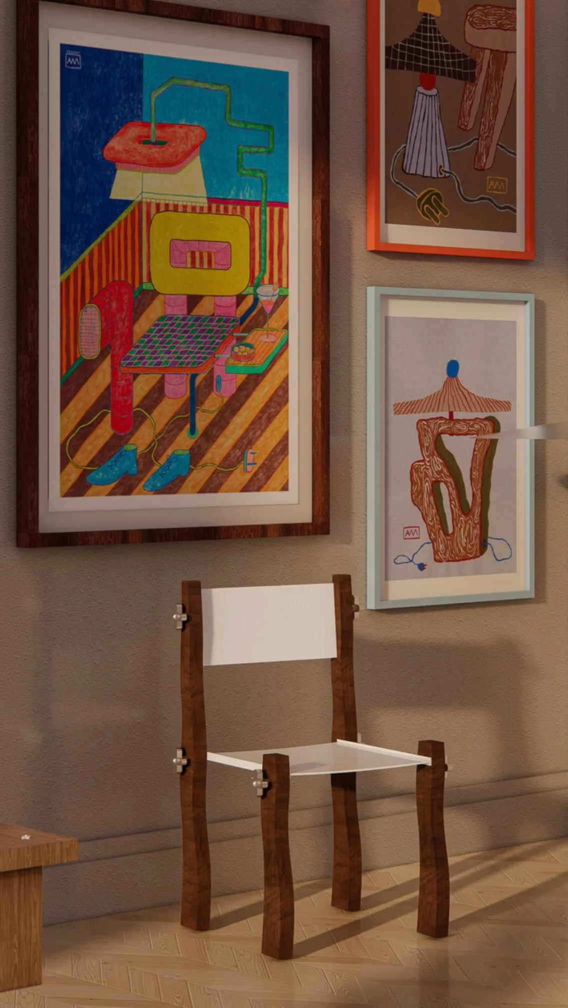 Playful, surreal spaces and objects where colour, form, and story unfold.